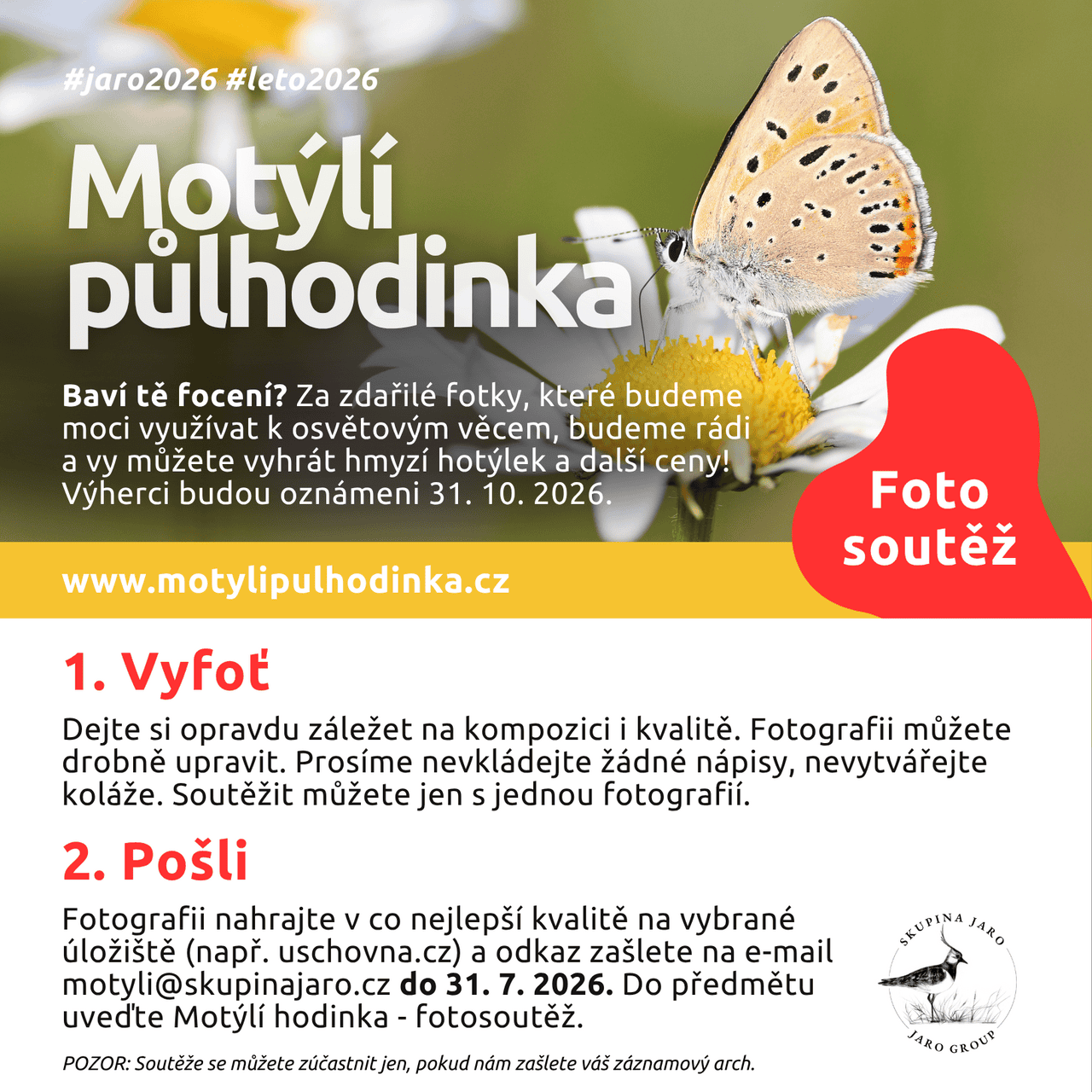 Každý, kdo se účastní sčítání a zadá údaje do formuláře, bude zařazen do slosování o krásné ceny: hmyzí hotýlek nebo plecháček Skupiny JARO s motýlem. Další ceny jsou v jednání. 🙂